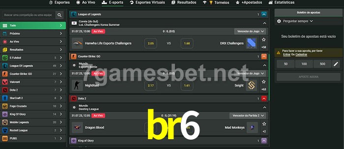 A aposta br6 oferece aos jogadores a experiência mais conveniente de apostas em eSports!